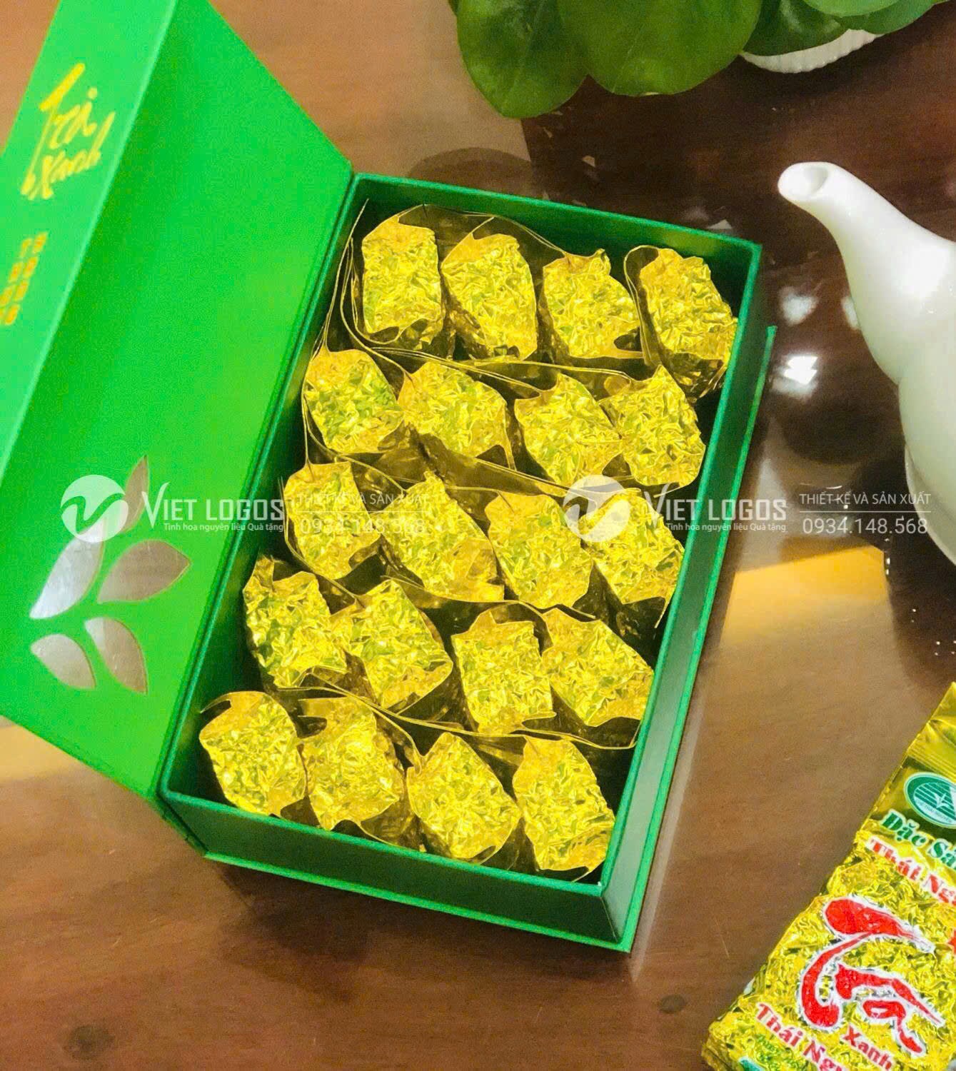 Hộp cứng đựng trà 200gam của Vietlogos: cứng cáp - độc đáo - ép nhũ mà giá lại vô cùng tốt, một lựa chọn hoàn hảo giúp nâng tầm giá trị thương hiệu!